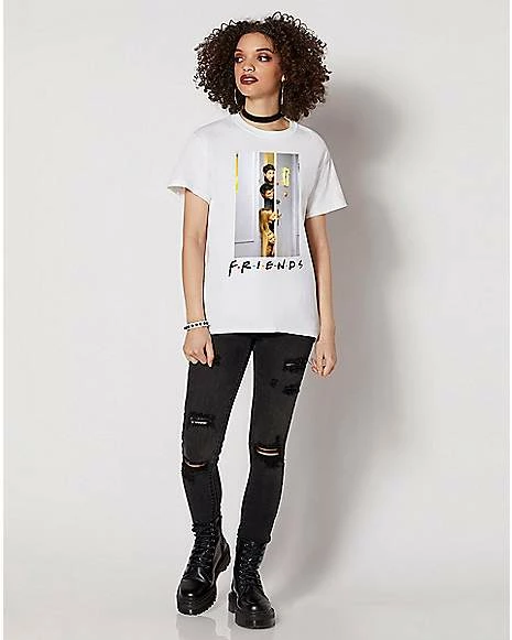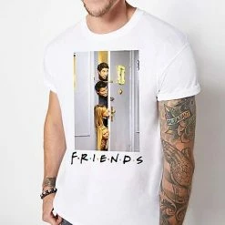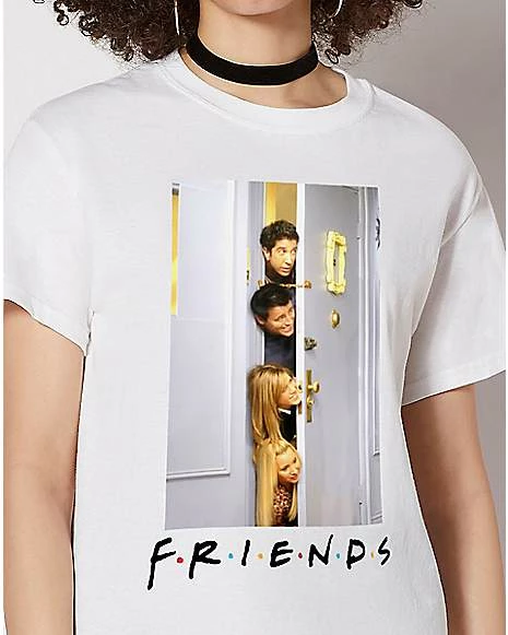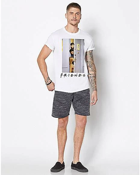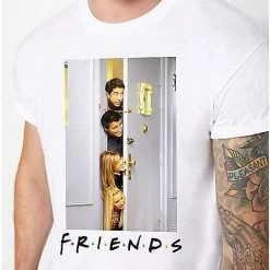 If you love watching Friends, you’ll love this classic Doorway Group Photo T Shirt! This iconic t shirt features the floating heads of Ross, Joey, Rachel and Phoebe as they peek in on Chandler and Monica on Thanksgiving Day. Snag this t shirt for yourself or for the Friends fan in your life!