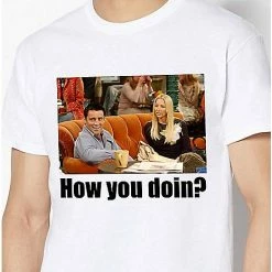 How you doin’? This classic pick up line worked wonders for Joey and it can work for you, too, when you wear this Friends How You Doin’ T Shirt! Hey, it’s worth a shot, right?