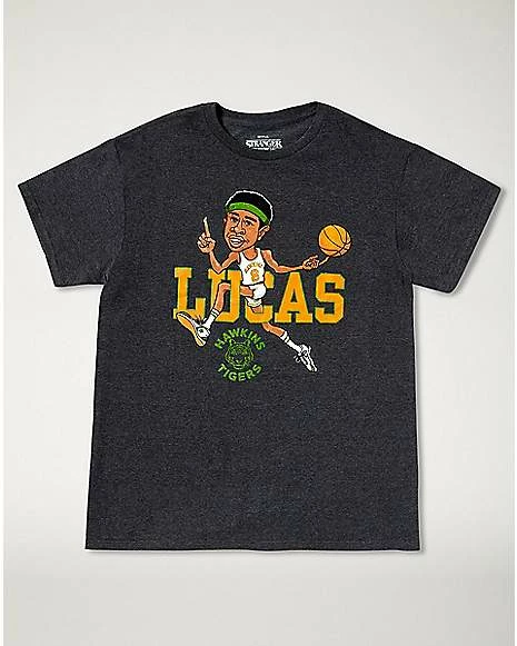 If Lucas is your favorite Stranger Things character, we’ve got the perfect tee for you. This officially licensed Lucas Hoops T Shirt features an image of the Hawkins High student playing basketball. While Lucas does love to ball, his real passion is fighting creatures from the Upside Down.ย
